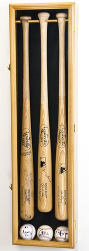 - Solid furniture grade beech hardwood baseball bat display case cabinet of beautiful design and construction is perfect for displaying and protecting 3 collector bats and balls.